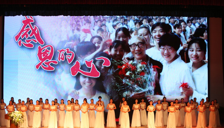 最后,在艺术系合唱团演唱“感恩的心”歌声中纪念大会结束。