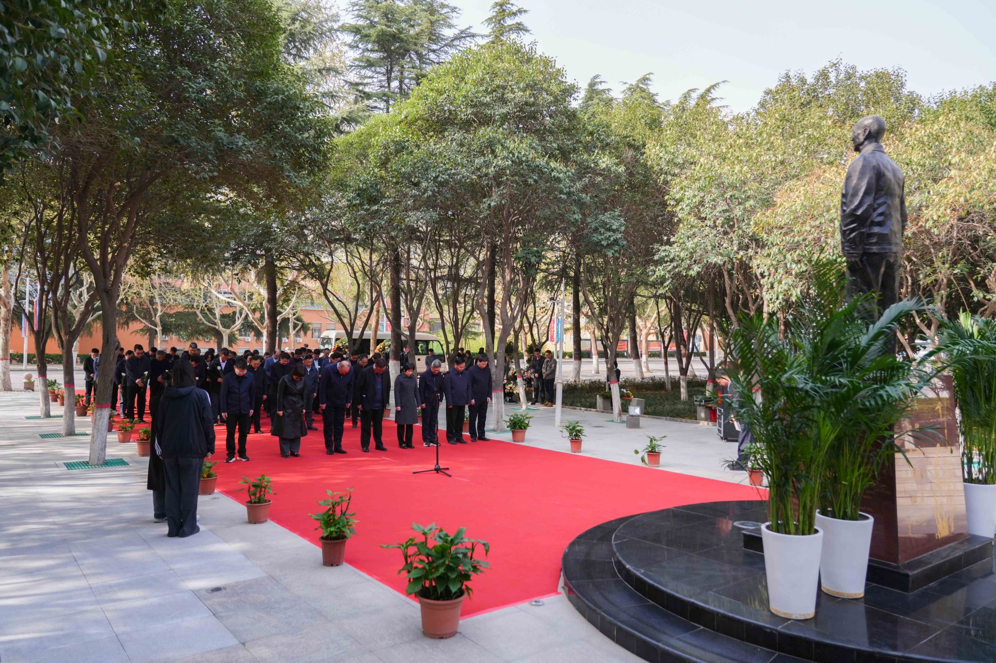 接着,董事长王新奇、实训与设备管理处处长程敏姿代表董事会敬献花篮并整理花篮缎带。河南省民办教育协会会长任锋代表协会敬献花篮并整理花篮缎带。党委书记雷霆,校长张欣,党委副书记、副校长张金安,副校长张其武等校领导敬献鲜花。邵明、李红杰、刘亚锋、杨波、徐阳等校友代表全体校友敬献鲜花。学校中层干部和学生代表敬献鲜花。大家真切地表达了对创办人的无限敬仰和哀思,感恩他为文化教育事业、民办教育事业发展做出的卓越贡献。