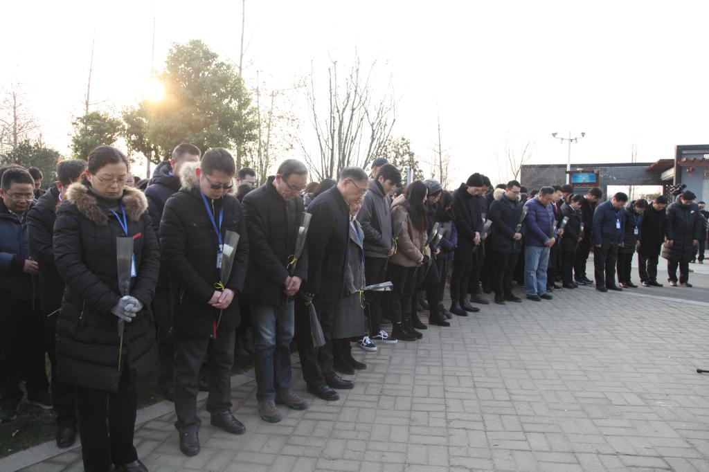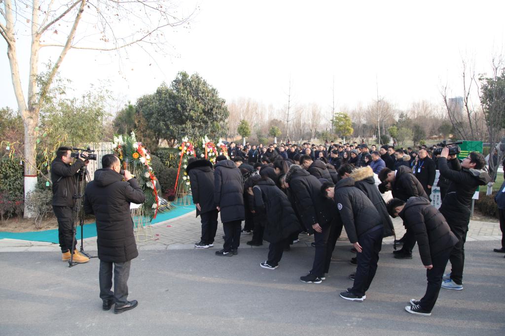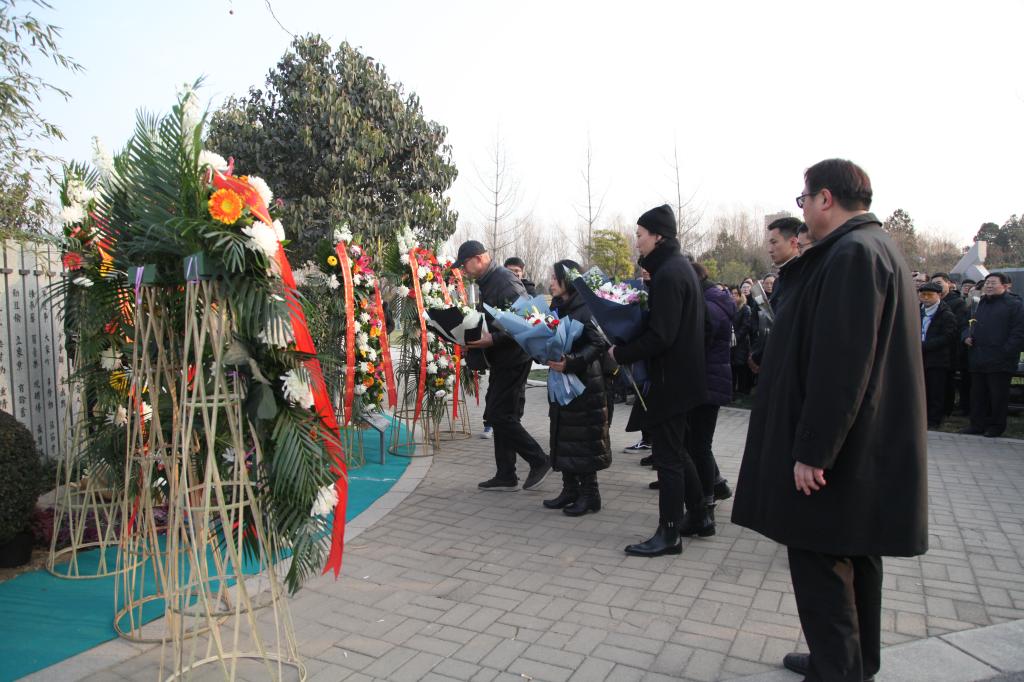 是日上午,参加仪式的人员,冒着严寒,怀着无比崇敬的心情来到创办人纪念像前,瞻仰创办人并敬献鲜花,缅怀创办人的不朽功绩和高风亮节,表达对创办人的无限哀思和深切怀念。