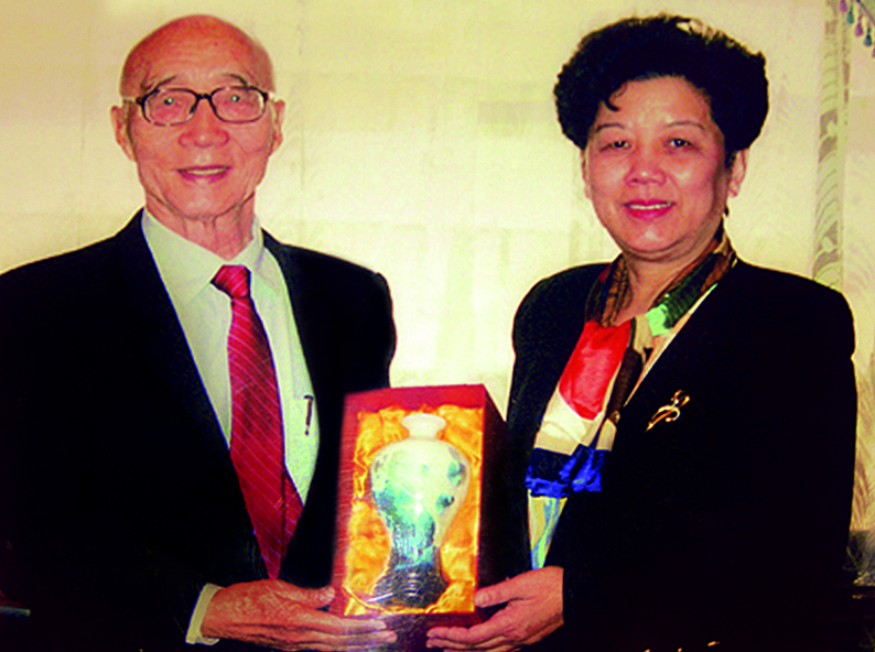 时任河南省副省长赵建才(右)为创办人颁发“感动中原60年60人”荣誉证书