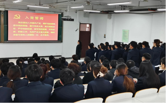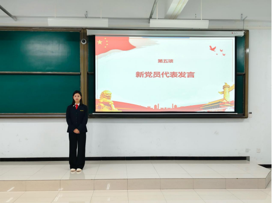仪式在庄严的国歌声中正式开始。会上组织员李新宣读了课程安排和纪律要求。随后,2025年上半年新发展的预备党员进行了集体宣誓,全体预备党员高举右拳,庄严宣誓,誓言铿锵有力、掷地有声,表达了新一批预备党员为共产主义奋斗终身的坚定决心。