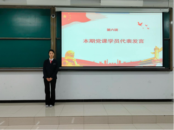 预备党员代表简佳馨结合自身经历,畅谈理论学习与实践收获,鼓励学员筑牢思想根基;本期党课学员代表宋怡影表示,将珍惜此次学习契机,努力成长为党员后备力量中的合格一员。