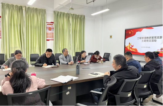 工程管理教研室党支部开展主题党日活动,传达学习中国共产党第二十届中央委员会第四次全体会议公报、《中共中央关于制定国民经济和社会发展第十五个五年规划的建议》等重要内容,深入领会习近平总书记在党的二十届四中全会上的重要讲话精神。