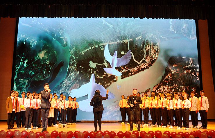 12月7日晚,由校团委主办,金贸学院团委承办,会计学院、文法学院、商学院、建工学院协办的“青春献祖国,永远跟党走”纪念“一二·九”运动82周年红色主题晚会在思源会馆倾情上演。校党委副书记兼纪委书记戎庭银、校纪委副书记袁征、校团委书记李霄锋、校团委组织部长李松涛,金贸学院副院长金虎斌、团委书记闫帅等老师,与2000余名师生一同欣赏了本场视听盛宴。