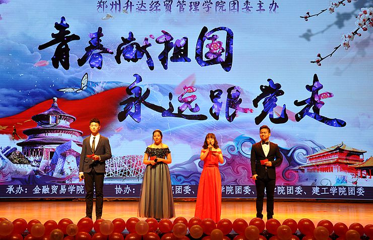晚会在金贸学院团学合唱团带来激情洋溢的《今天是你的生日,我的中国》中拉开帷幕。校武术协会奉上的《精武之魂》,以精彩的武术表演展示了中华民族武术文化的博大精深。接下来,金贸学院2017级金本五班团支部经过精心编排,将话剧《恰同学少年》搬上舞台,向在场师生展现了少年的青春与热血以及中华好男儿心中勿忘国耻、振兴中华的爱国之志。建工学院李恒、金贸学院民族舞蹈队带来的舞蹈《九儿》,以婀娜的舞姿表现了反抗封建、为自由奋争的女性形象。文法学院的情景朗诵《情怀家园》,声情并茂、抑扬顿挫,抒发了对家园的热爱。金贸学院刘卓迪、田野以一支《十送红军》,唱出了对红军的赞颂。2017经济学班团支部的话剧《母亲的信》,批判了贪污腐败,赞颂了伟大的母爱和反腐倡廉之风。由IAH嘻哈文化社等带来的《国粹嘻哈传》,将中国传统戏曲与嘻哈相结合,行使多彩、激情四射;最后,由金贸学院团委学习部推选的朗诵《战士之歌》,歌颂了战士们誓死捍卫祖国的决心,他们的心中都有一支从未生锈的铁枪,时刻准备着保家卫国、守卫和平。