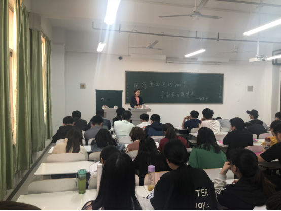 此次团日活动以纪念五四运动100年为主题,王洋洋老师围绕五四运动的背景、开展情况及五四运动的结果向广大同学进行分享,指出:五四精神的核心内容为"爱国、进步、民主、科学"。五四精神的核心内容应该成为每一位团员青年的精神追求,在国家利益面前勇于捍卫国家利益,在社会发展面前,追求进步;在与人相处中,追求民主;对待学习,勇于追求科学,成为真正的有为新青年。同学们纷纷表示,将会铭记历史,以五四精神为追求,为中华民族伟大复兴贡献青春力量。
