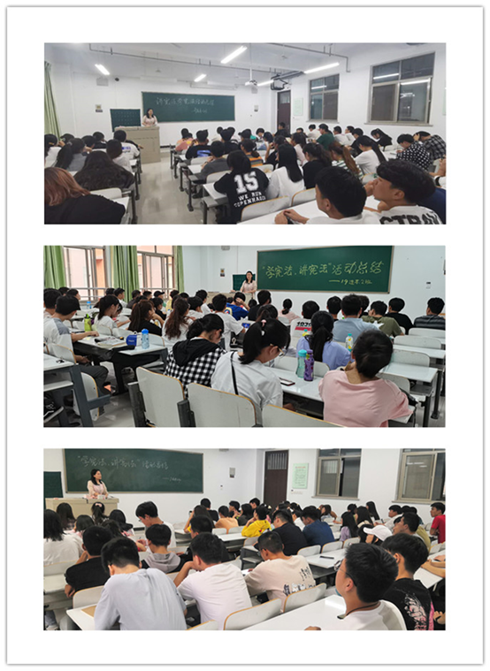 活动后期,各班级团支部积极开展“学宪法,讲宪法”活动总结,通过总结,进一步推动了学生对宪法的学习和宣传,弘扬了宪法精神,维护了宪法权威。19造本1班的索嘉璐同学说:“作为大学生,我们首先要掌握与自己生活密切相关的一些最基本的法律常识,具备守法、用法、护法的前提条件;其次,要遵纪守法,养成良好的行为规范和道德修养。第三,我们要善于用宪法和法律武器来维护自己的合法权益,进而维护他人的权益,维护国家的利益。我们维护好了个人和集体的权益,就是维护宪法的尊严!”19造本2班的李方影同学说:“宪法与我们每个人的生活息息相关,因为我们都生活在这片土地上。宪法规定公民的基本权利和义务,宪法保障每个公民的人权,比如,它就规定,所有的青少年享有受教育的权利。”19造本3班的崔闯同学说:“没有规矩,不成方圆。要建设高度文明、高度民主的社会主义国家,实现中华民族的伟大复兴,就必须在全社会形成‘以遵纪守法为荣、以违法乱纪为耻’的社会主义道德观念,让遵纪守法成为我们的荣誉。”