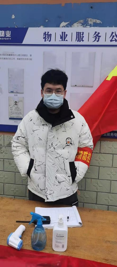 王雅博,共青团员,19工程管理本科2班学生。2022年到来之际,疫情再次来袭,得知家乡许昌成为高风险地区后,王雅博毅然决然报名参加当地志愿者,本着就近原则,他被分配到许昌市魏都区丁庄街道办事处洞上社区。每天对外地来许人员进行信息登记与整理,和其他志愿者进行社区消毒任务。王雅博同学说:“疫情的再次来袭是谁都不愿看到的,很幸运自己能有机会亲眼见证中国基层民众的力量,也很幸运自己能成为其中的一份子。我相信,在大家的共同努力下,我们一定能战胜疫情,守得云开见月明。”