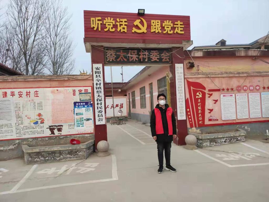 蔡雨帆,共青团员,20造本1班学生。 1月8日,安阳爆发疫情,为尽快控制疫情全市范围内将全面进行核酸检测。蔡雨帆同学积极响应安阳市安阳县辛村乡蔡太保村招收青年志愿者的号召,第一时间加入到疫情防控志愿者队伍,做好所在村的疫情防控工作,每天做好进出车辆登记,对村民进行防控知识宣传,提醒村民不要聚集,做好个人防护。在全员核酸中,同其他志愿者协助工作人员进行村民信息的采集,录入,帮助维持村民做核酸的秩序,助力全民核酸工作顺利完成。蔡雨帆同学说:“把志愿服务当做情怀,用实际行动助力疫情防控,用责任与担当筑起抗疫防线,这是我们青年学生的初心与使命。”