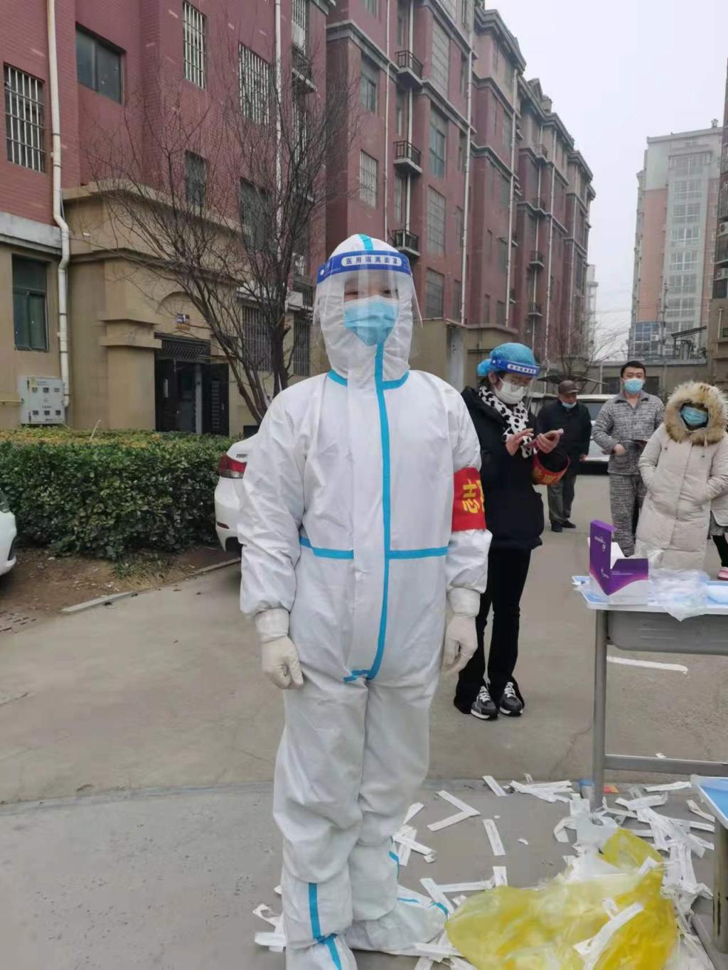 薛晨龙,20造本3班学生。2022年伊始,安阳爆发新冠肺炎疫情,薛晨龙同学的家乡汤阴县古贤镇古贤村更是上升为高风险地区,村里的疫情防控工作也面临挑战。薛晨龙第一时间来到村委会报名志愿者,每天向村民宣传防疫知识,配合村委会统计核实疫情防控情况以及在核酸检测中录入信息、管理秩序等等工作。身在高风险地区抗疫的薛晨龙每天穿着防护服穿梭人群,虽然行动不便,但是薛晨龙说:“我也算是体验了一下医护人员的不易,比起他们,我们能做的有限,但是作为一名大学生,我们要主动担当作为,用自己的实际行动去践行青年大学生的责任与担当,相信一定会雨过天晴,迎来抗疫的胜利。”