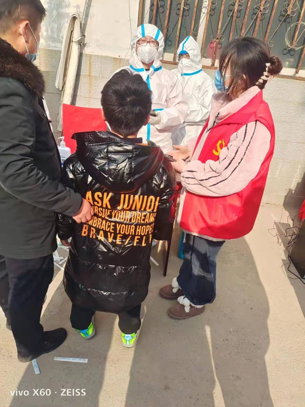 秦梦宵,21造专3班学生。寒假刚刚开始,河南省安阳市滑县锦和街道突然爆发疫情,当晚地区开始全员核酸检测。家在安阳市滑县锦和街道的秦梦宵同学,主动向社区报备成为滑县锦和街道领秀城的一名志愿者,他主要负责核酸检测时扫码登记的信息。同时,当人手不够时,他也会配合医护人员协助完成核酸检测,保证小区人员有条不紊地进行各项检查工作。
