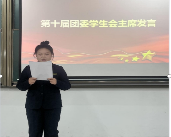 第十届学生会执行主席崔聪宇从思想引领、校园文化活动和为同学办实事三个方面对过去一年学生会工作进行总结,向所有支持团委学生会工作的老师和同学表示感谢,最后她希望新一届团委学生会成员继续努力,祝愿学院的学生工作今后更加出彩。
