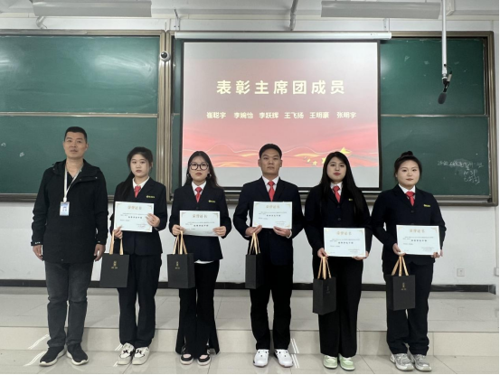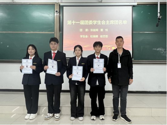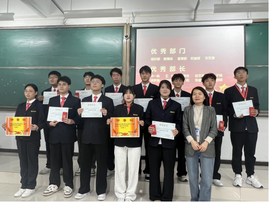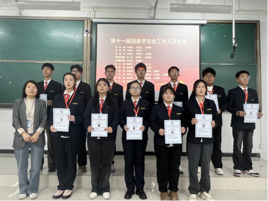 会上,韩炎涛和支园园分别为第十届团委学生会主席团、优秀部门、优秀部长和优秀志愿者颁发荣誉证书和纪念品;随后,他们为新一届团委学生会工作人员颁发聘书。