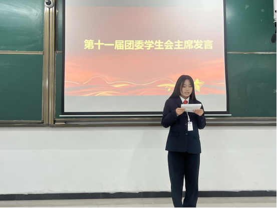 第十一届学生会执行主席杜瑞晴代表新一届学生会成员做表态发言,表示学生会成员会以更高的标准严格要求自己,坚定“不忘初心跟党走”的理想信念,推进学生改革步伐,强化服务宗旨,勇做走在时代前列的奋进者、开拓者、奉献者,建设明纪律、敢担当、讲奉献、争一流的学生会。
