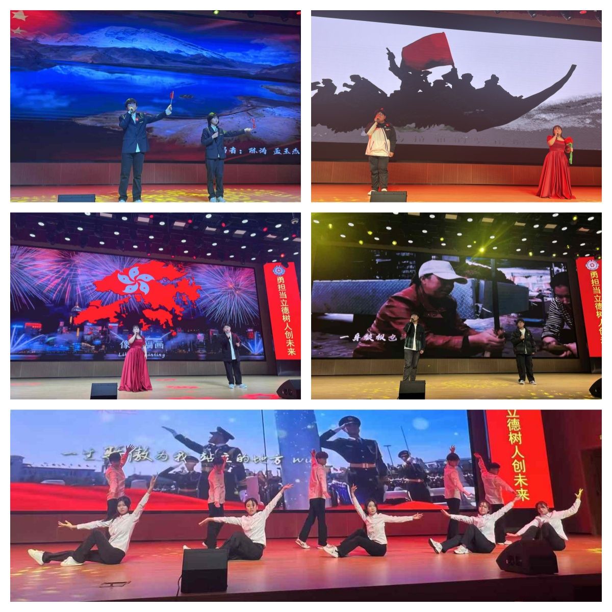 晚会在开场舞《有我》中拉开了序幕,在既温柔又充满了决心与勇气的旋律中,学子的舞姿让人感受到青春的似火热情与无限活力。歌曲《我爱你中国》、《紫荆花盛开》唱出了青年学子对祖国母亲的爱以及对祖国母亲更加团结强大的祝福;《无名之辈》、《送你一朵小红花》唱出深情与感动,生逢盛世的青年学子注定不负盛世,愿以吾辈之青春,传前辈之火炬,昭盛世之中华。