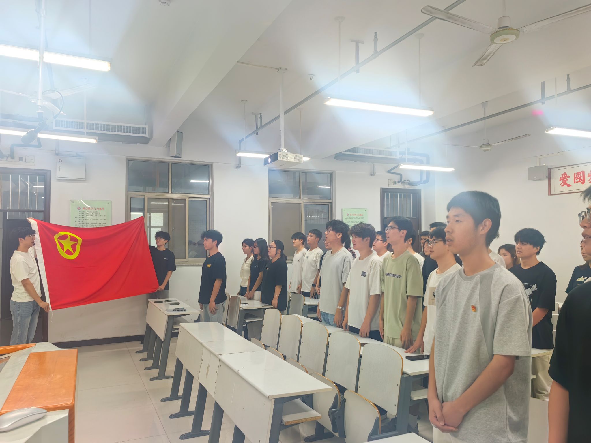 仪式在庄严的国歌声中拉开帷幕。学院团委组织部副部长刘家兴宣读了新团员名单,梁皓瑜等32名同学经过严格培养和考察,正式成为共青团员。在团旗的见证下,新团员们高举右拳,以铿锵有力的誓言许下"为共产主义事业而奋斗"的青春承诺。随后,学院团委组织部副部长代鑫林为新团员代表佩戴团徽、颁发团员证,这枚闪耀的团徽象征着责任与使命的传承。