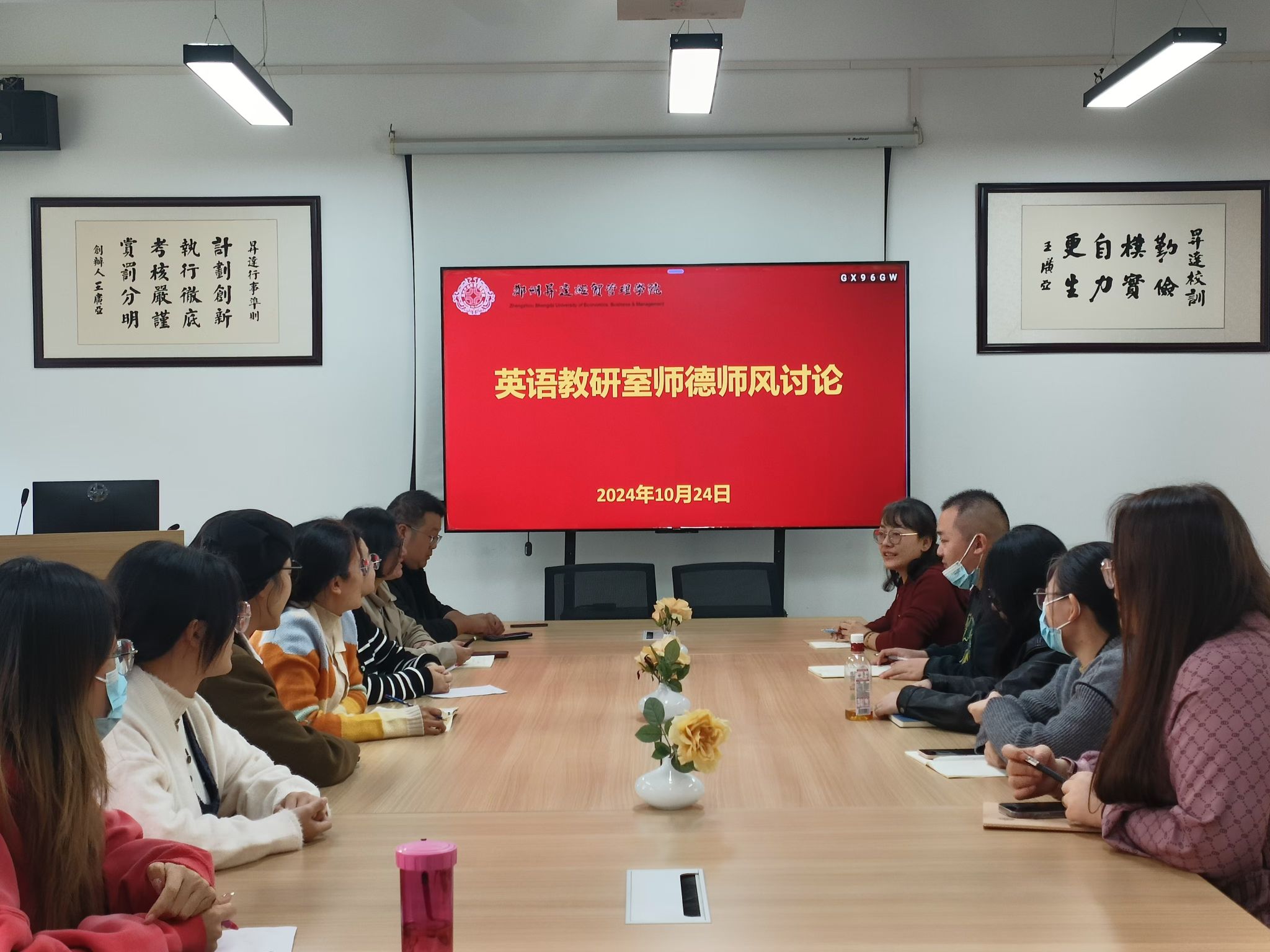 本次教研活动内容丰富,讨论深入,取得了良好的效果。通过此次活动,英语教研室全体教师进一步明确了后续的工作方向,并将继续努力提升教学质量和师德水平,为学院的发展贡献力量。(图文:杨云娜 审核:石皓召)
