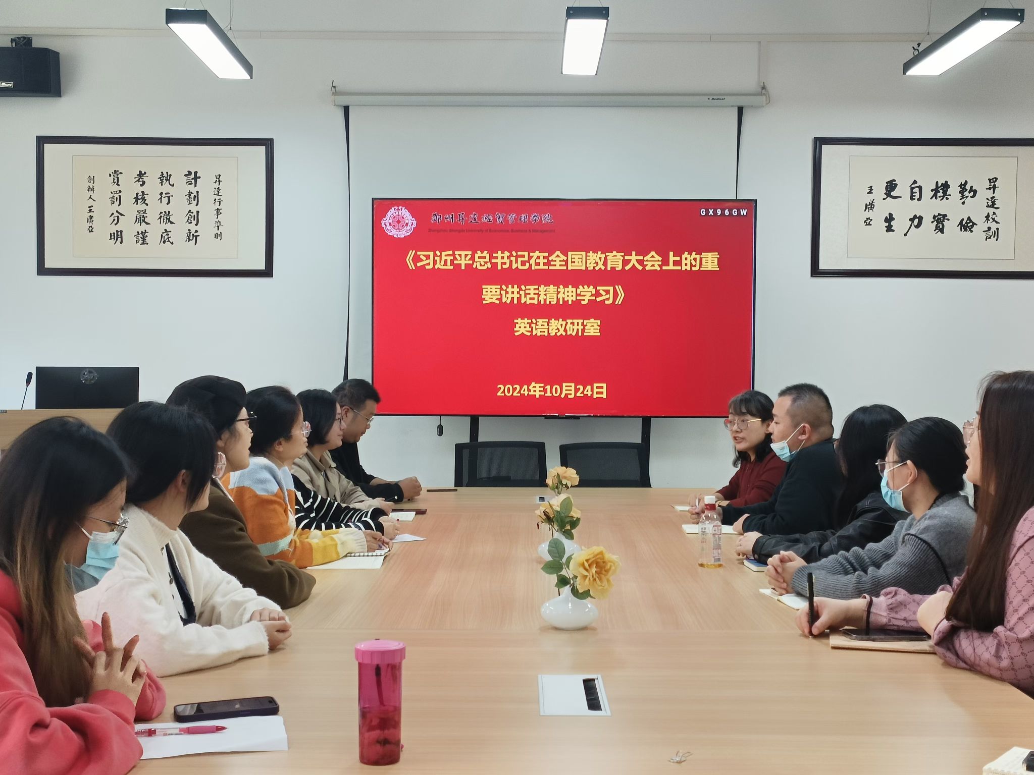 2024年10月24日(周四)下午14点,外国语学院英语教研室在1号楼206会议室成功举办了教研室集体会议。本次会议由英语教研室主任兼党支部书记张丽娟老师主持,全体英语教研室教师参加了此次活动。会议围绕教研备课、师德师风建设及学习习近平总书记在全国教育大会上的重要讲话精神展开了深入讨论。