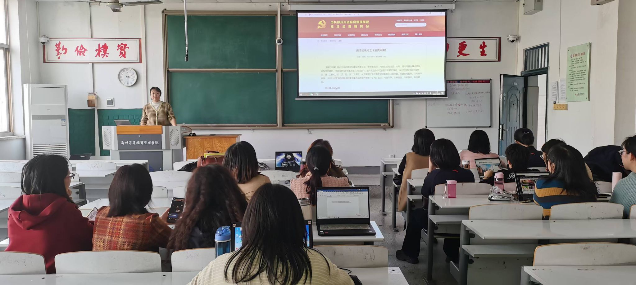 2024年10月29日中午,外国语学院大学英语视听说教研室党支部在综合楼322教室观看廉洁教育专题片,党支部书记宋玮主持会议,支部全体党员参加会议。