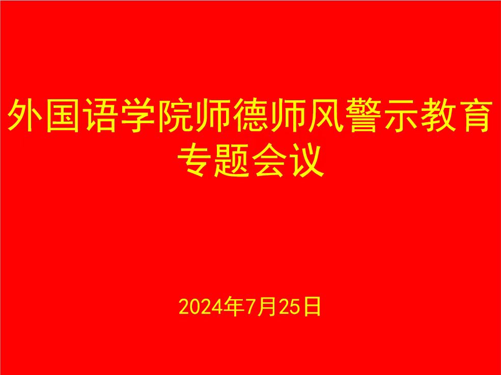 按照学校教师工作部工作部署,外国语学院于2024年7月25日下午6时,通过腾讯会议平台召开了“外国语学院师德师风警示教育专题会议”。此次会议由外国语学院党委书记石皓召同志主持,王莉莉院长及学院全体教职工...[详细]