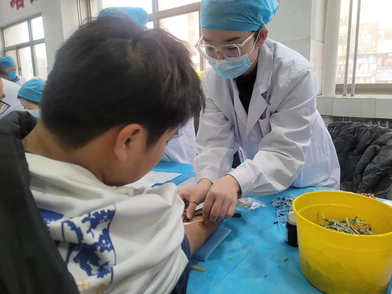 在体检现场,医务人员对每个学生进行认真细致地检查,对体检结果详细记录,并给予健康指导。抽血、皮试的护士操作轻柔,态度和蔼。胸部透视工作人员全神贯注,一丝不苟。
