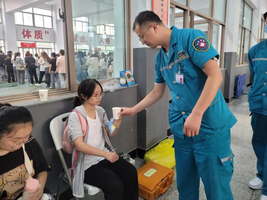 体检场地天气闷热,医务工作者坚持在自己的岗位认真负责,为每一位升大学生检查身体,任劳任怨,忙而不乱。省二院为了保障体检顺利进行,特派救护车辆及救护员为学生保驾护航。用专业及和蔼的态度。为学生服务得到了师生及领导的认可和赞扬。学生们秩序井然,也积极配合。彰显了升达学子的风貌与素质。及大学生吃苦耐劳的精神。