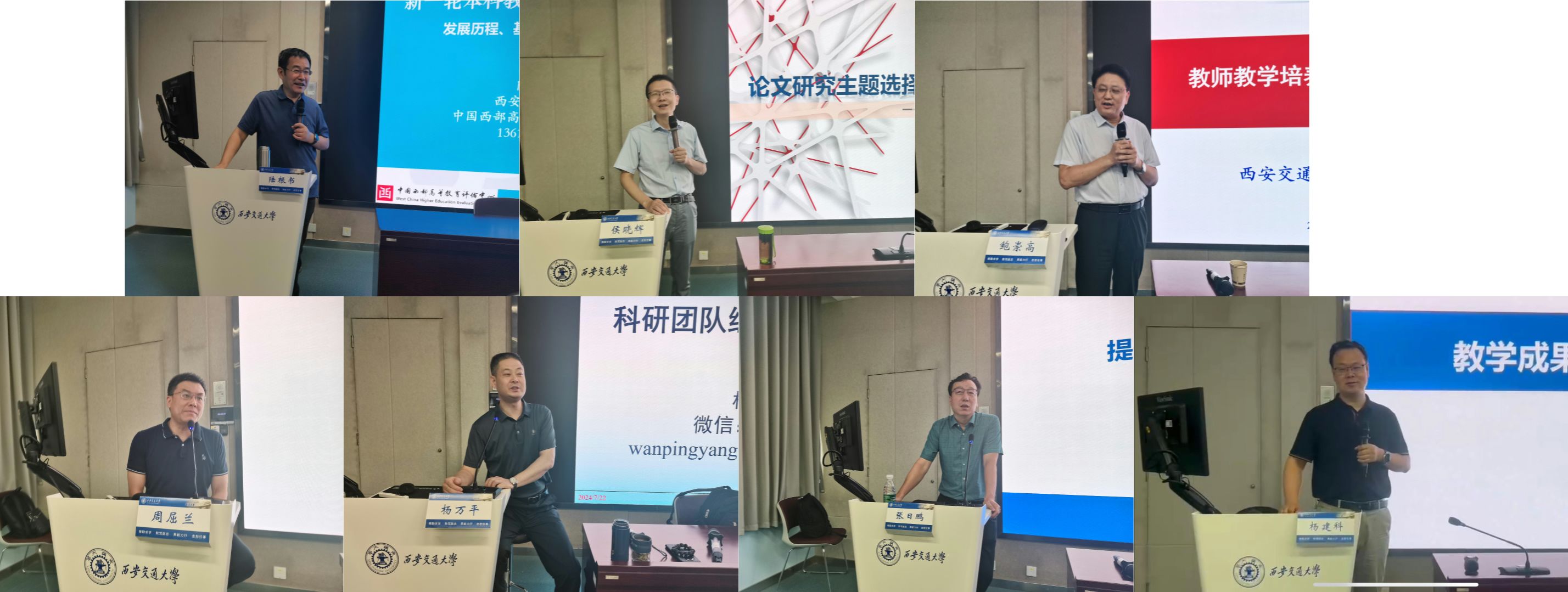 7月21日-25日,专题讲座邀请西安交通大学各学院教授作“新一轮审核评估的重点问题”“科研团队组织管理与发展”“论文主题选择与确定”“高校教师教学培养与教学团队建设”“高校教学研究活动”“基于学生中心的教学设计与课堂示范”“哲学社会科学优秀成果奖申报质量提升”“教学成果奖的凝练与申报”共八场教科研主题报告。他们以教育教学创新、科研实践经验、教师专业发展为切入,进行了富有指导性和实践性的分享。