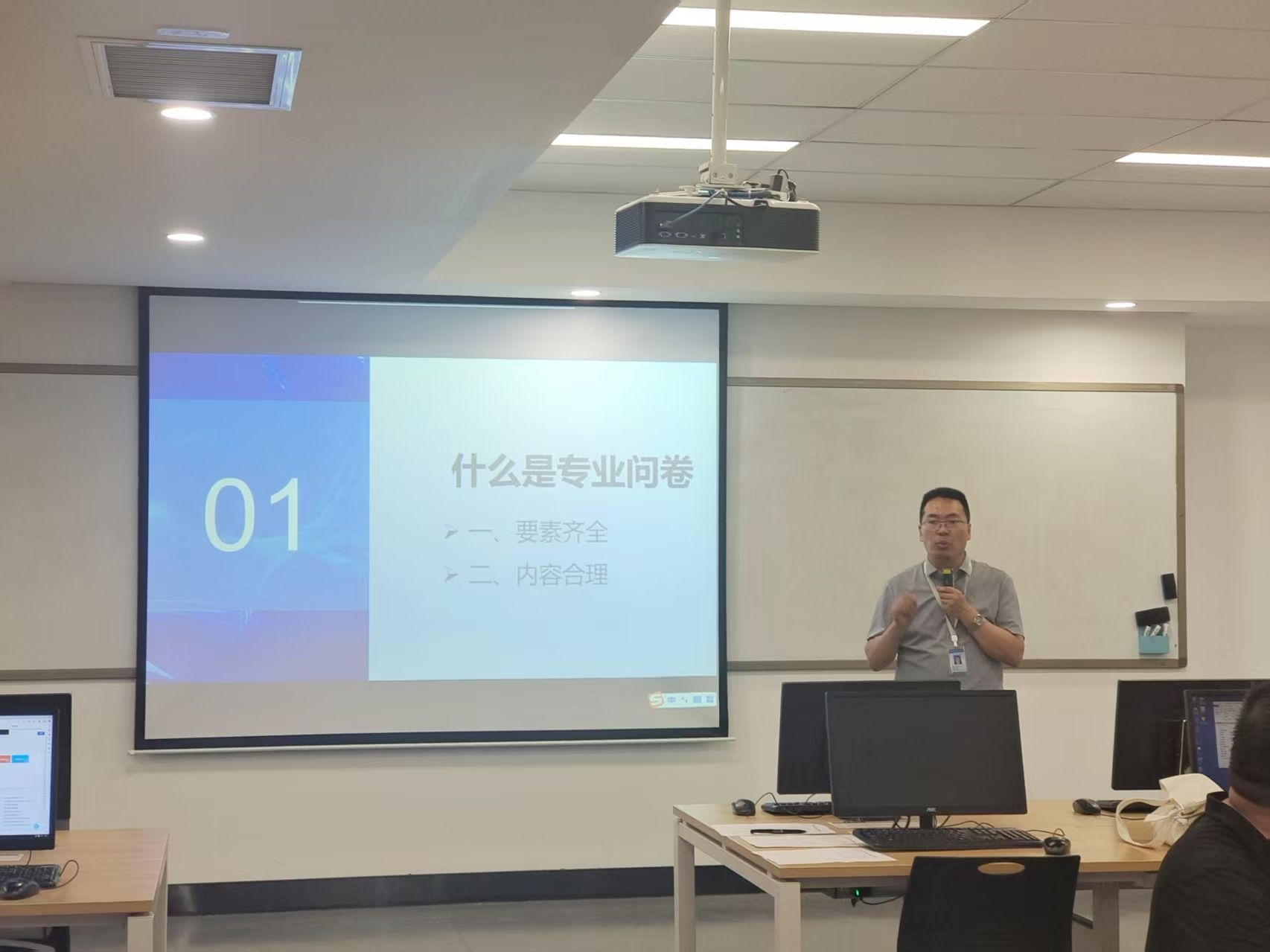活动伊始,白教授从问卷“要素齐全、内容合理”的基础要求切入,指出问卷设计中题目设置不具体、描述不明确及过于专业等常见问题,剖析问卷设计弊端,结合教学调研实例,演示如何通过清晰表述、合理排序(筛选题 - 导入题 - 重点题 - 分类题 ),打造逻辑严谨、指向明确的调研问题,让教师们掌握精准捕捉教学需求的问卷设计技巧。