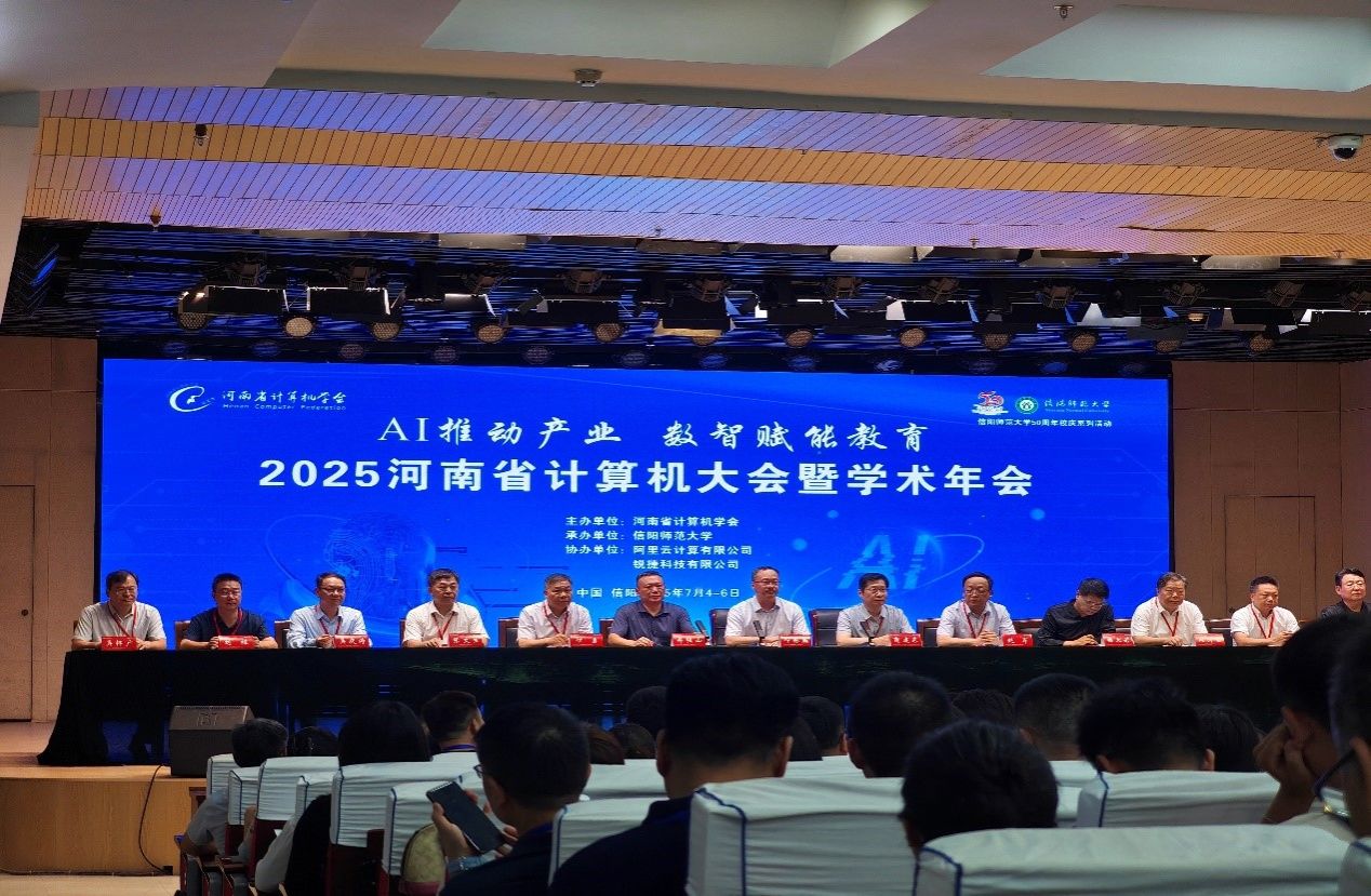 2025年7月4日至6日,由河南省计算机学会主办、信阳师范大学承办的“2025年河南省计算机大会暨学术年会”在信阳师范大学成功举办。本次大会以“AI推动产业,数智赋能教育”为主题,汇聚了众多院士专家、行业领袖、学术精英与技术先锋。我校信息工程学院教师代表程杰、徐宇航积极参会,深入学习前沿动态,广泛交流学术观点。