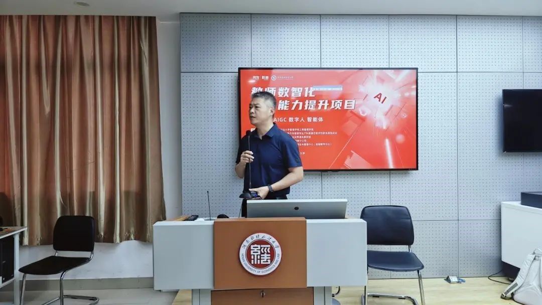 随后,王永伟教授围绕“商科类专业数智化转型及交叉学科建设”主题进行了深度分享,为参训教师带来了高校学科与专业改革的前沿思路。他重点介绍了河南财经政法大学的转型实践:以“1(高质量发展根本目标)+2(学科攀峰、人才登峰计划)+3(优化学术团队、研究平台、科研课题资源)+4(大部制、学部制、书院制、完全学分制)”的学科治理体系改革为框架,搭建“百业千企”调研平台,整合河南省民营企业数据库,推动“商法”“商农”“商数”三大交叉方向发展,通过跨学科教师团队建设、交叉课程设计、微专业开设等举措,打破知识壁垒与组织边界。