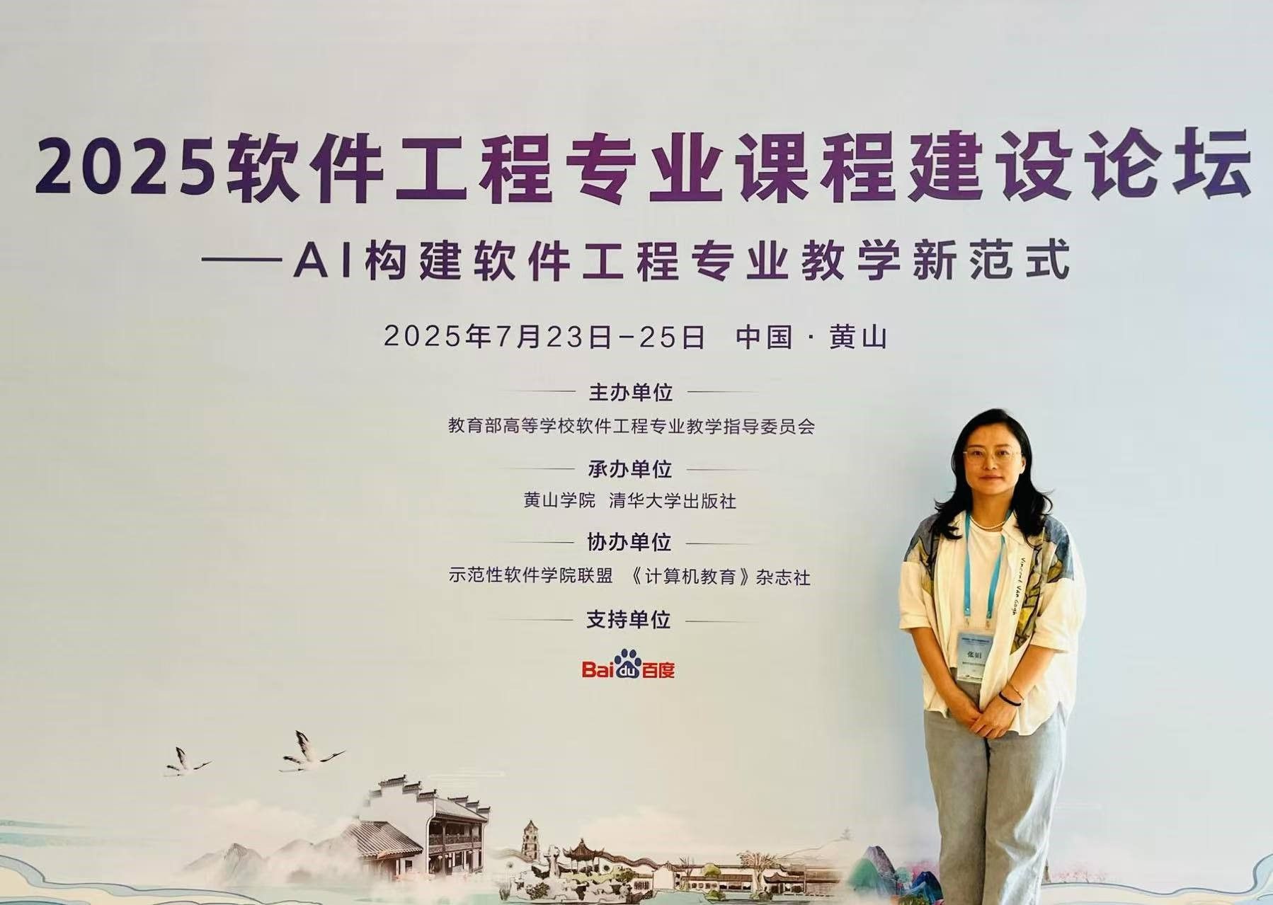 为贯彻落实《教育强国建设规划纲要(2024—2035年)》,促进高校间优秀教学成果交流,推动软件工程专业高质量发展,优化软件工程学科布局,深化人工智能与软件工程的交叉融合,教育部高等学校软件工程专业教学指导委员会于2025年7月23日至25日在安徽省黄山市举办“2025软件工程专业课程建设暨AI构建软件工程专业教学新范式论坛”。本次论坛由黄山学院和清华大学出版社承办,示范性软件联盟和《计算机教育》杂志社协办。信息工程学院软件工程教研室主任张娟参会。省内外90余所高校的130位教授学者出席论坛。