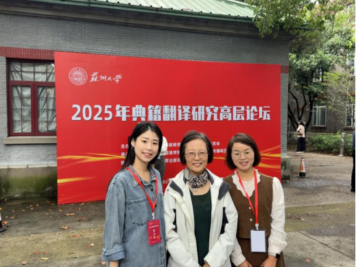 2025年10月17日至10月19日,2025年典籍翻译研究高层论坛在苏州大学天赐庄校区隆重举行。本次论坛由中国英汉语比较研究会典籍英译专业委员会主办,苏州大学外国语学院与中国文化翻译与传播研究基地联合承办,汇聚了国内外典籍翻译领域的知名专家学者,共同探讨典籍翻译的理论创新与实践路径。郑州升达经贸管理学院外国语学院翻译教研室赵文静教授、杜小芳老师、陈易萌老师参会,与业界同仁展开深度学术交流。