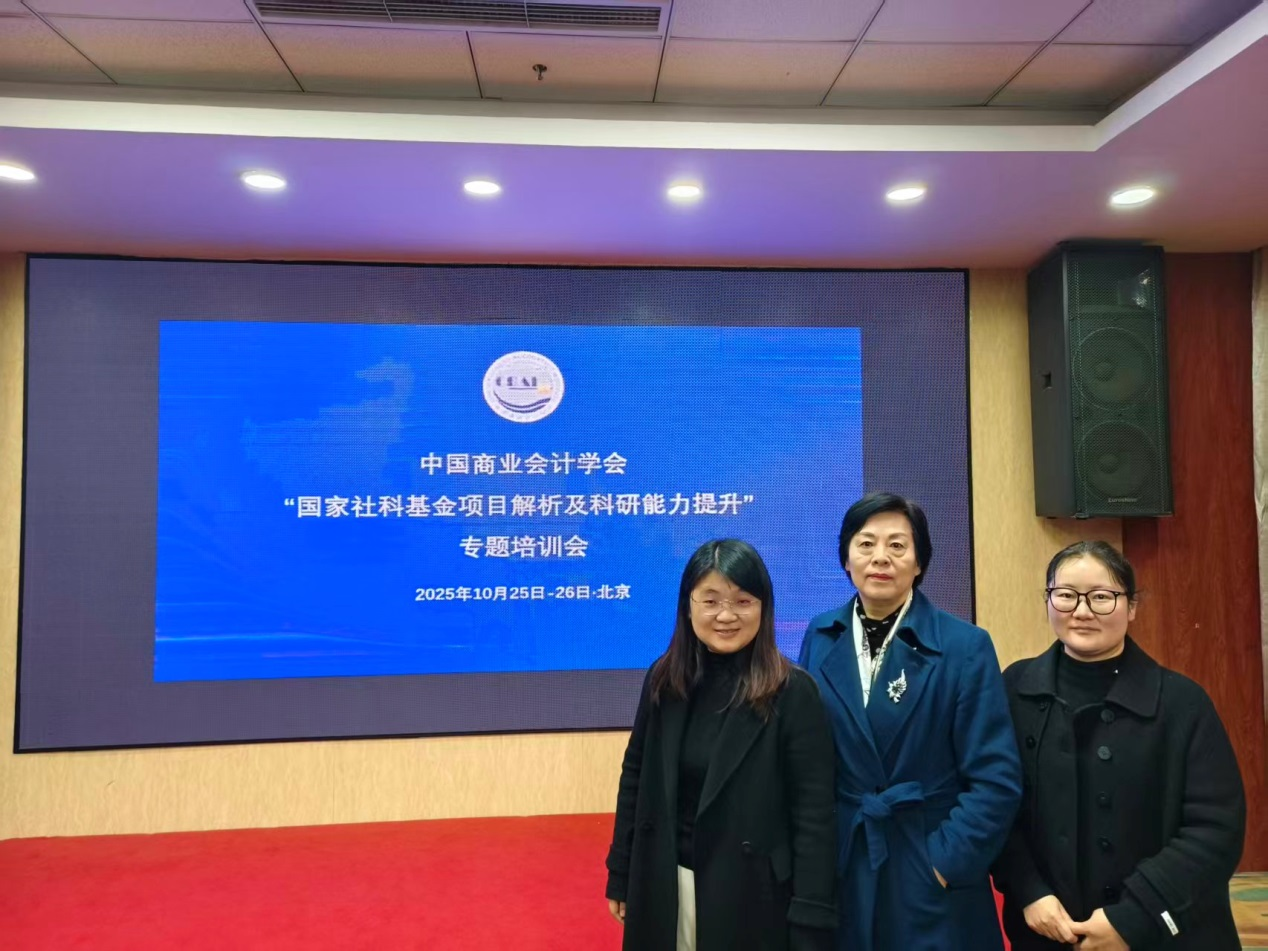 为全面了解2026年国家社科基金项目发展趋势和特点,提升教师课题申报能力和科研水平,加速学科建设。2025年10月24日至26日,会计学院委派数智化会计研究所所长王慧教授、王燕霞和宋丽两位副教授,赴北京参加“国家社科基金项目解析及科研能力提升”专题培训会。该培训会由中国商业会计学会和北京物资学院会计学院联合主办。