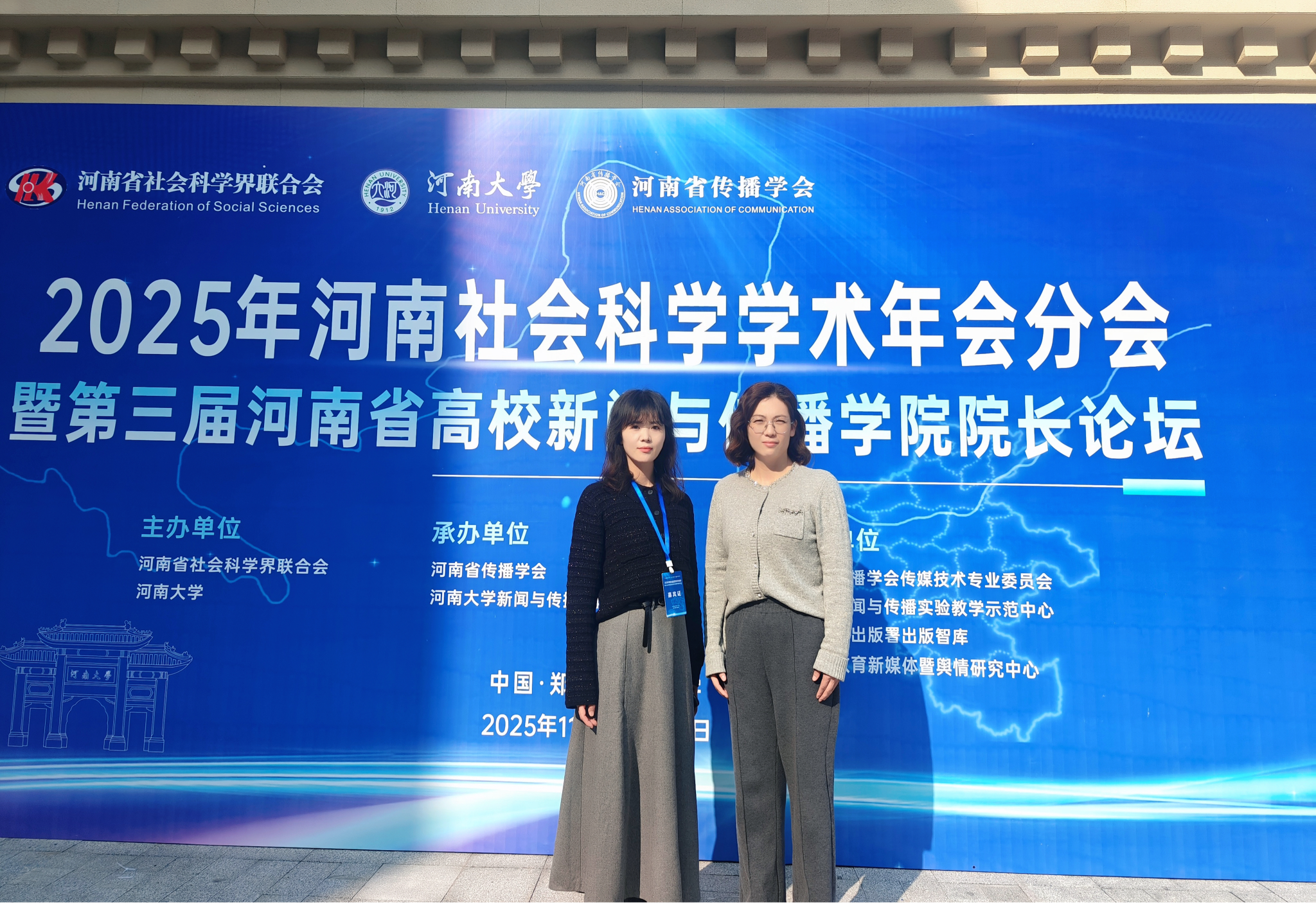 2025年河南社会科学学术年会分会场活动暨第三届河南省高校新闻与传播学院院长论坛于11月13日在河南大学郑州龙子湖校区召开。文法学院新闻学教研室主任赵静和骨干教师段曈曈、张彩参加会议。