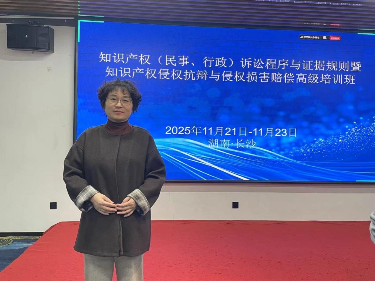 为紧跟知识产权司法保护前沿动态,深化法学教育与司法实践的融合,近日文法学院法学教研室田妍妍教授参加了由中国行为法学会培训部主办的“知识产权(民事、行政)诉讼程序与证据规则暨知识产权侵权抗辩与侵权损害赔偿高级培训班”。此次培训汇聚了国内知识产权审判领域的顶尖专家,为期三天的深度学习与交流,为我院教师带来了一场学术与实务的盛宴,取得了丰硕成果。