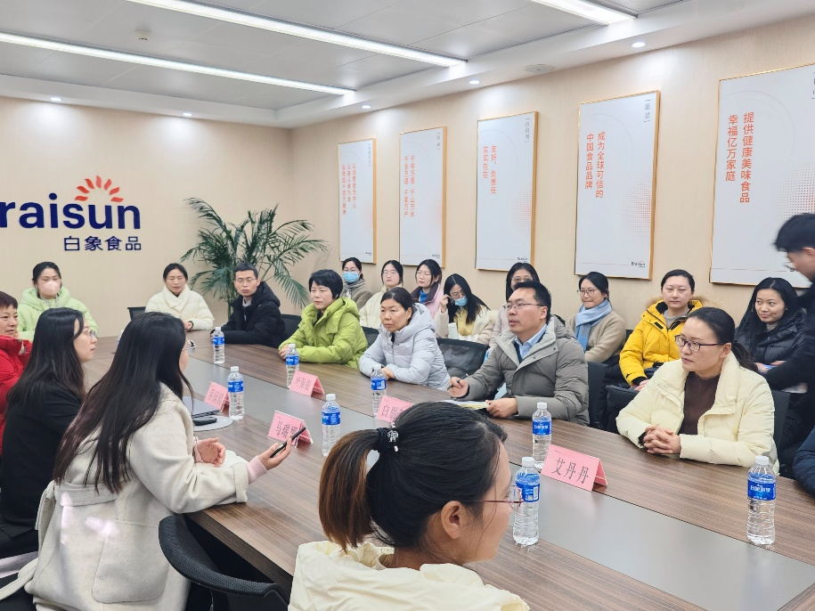 在白象食品集团的精心安排下,参访团队系统了解了白象自创立至今的发展历程与企业文化,深入感受其从本土品牌到行业领先者的战略路径与创新实践。随后,教师们走进产品展示中心,全面了解了白象涵盖方便食品、挂面、调味料等多品类、多场景的产品矩阵,直观体会其在产品研发与市场定位方面的商业逻辑。此外,团队还实地参观了智能化生产线,从原料处理、生产加工到包装仓储,全程观摩了现代化食品制造流程,对企业在供应链管理、质量控制与运营效率等方面的实践有了生动认知。