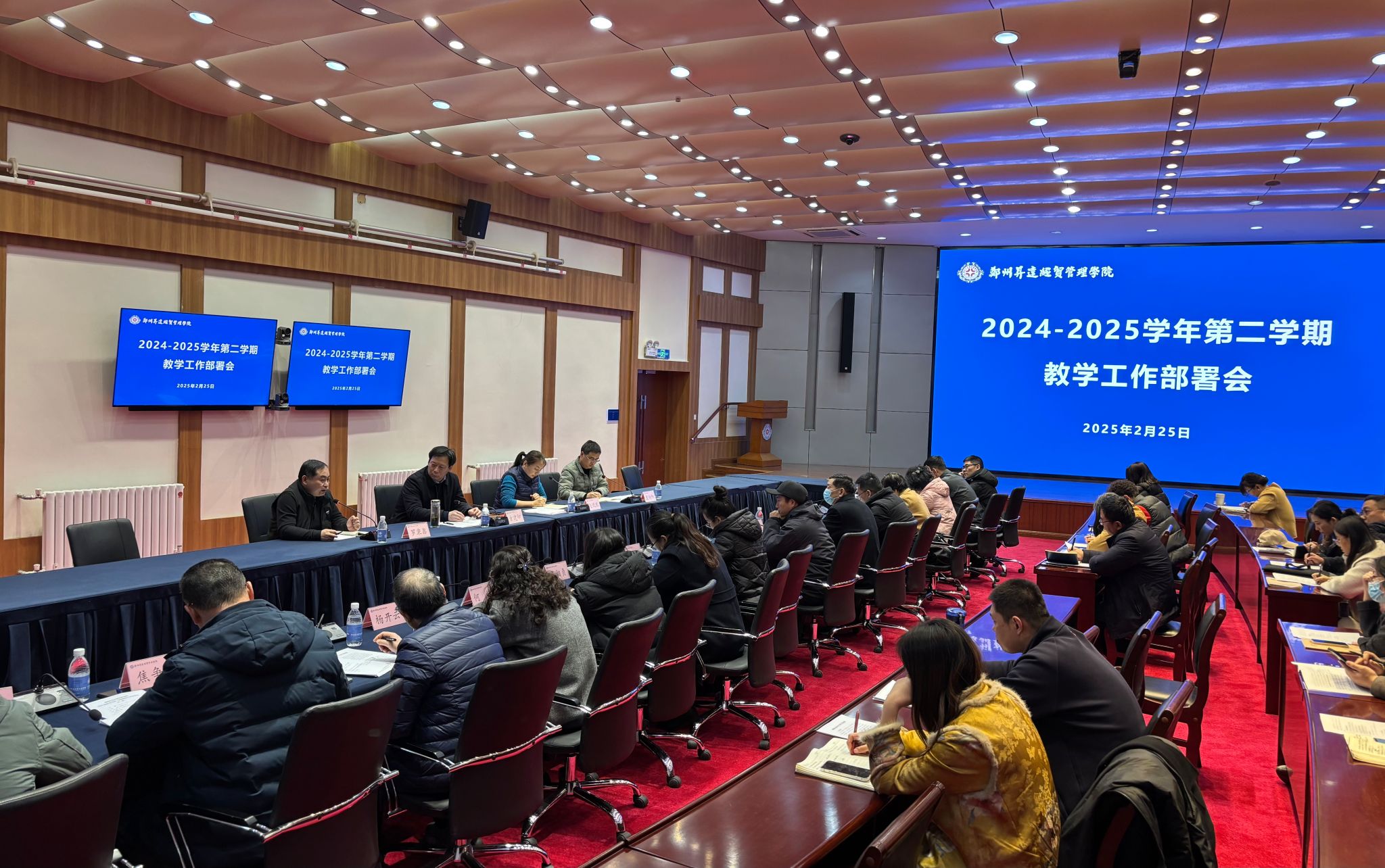 2025年2月25日下午,我校在国际会议厅召开了2024-2025学年第二学期教学工作部署大会,教学副校长、各二级学院院长、副院长、教学秘书以及教务处、教学质量监测与评估中心科级以上人员出席本次会议,会议由教务处副处长袁向阳主持。
