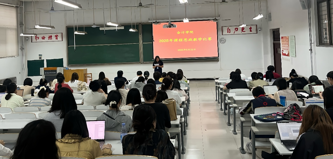 为深入贯彻落实立德树人根本任务,充分发挥教师课程育人的主体作用,扎实推进新时代育人体系建设,2025年5月22日下午,会计学院在时金楼107室举行了“会计学院2025年课程思政教学比赛”,此次比赛由毕鹏翾副院长主持,会计学院全体教师到场观摩学习。