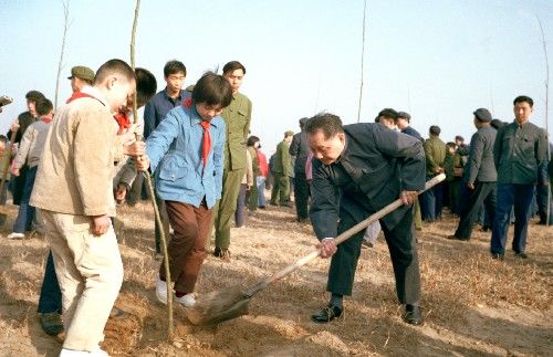 1982年的植树节,邓小平同志率先垂范,在北京玉泉山上种下了义务植树运动的第一棵树。 新华社发