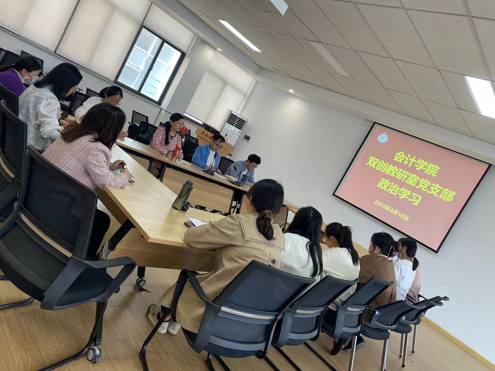 为全面准确学习领会党的二十大精神,进一步提升教师政治理论水平,4月18日下午,会计学院双创教研室党支部在教学4号楼209会议室围绕“习近平总书记关于中国式现代化重要论述”开展专题政治学习活动,双创教研室全体教师参会,学院党委书记张蕾以普通党员身份参加了此次政治学习,会议由党支部书记闫本宗老师主持。