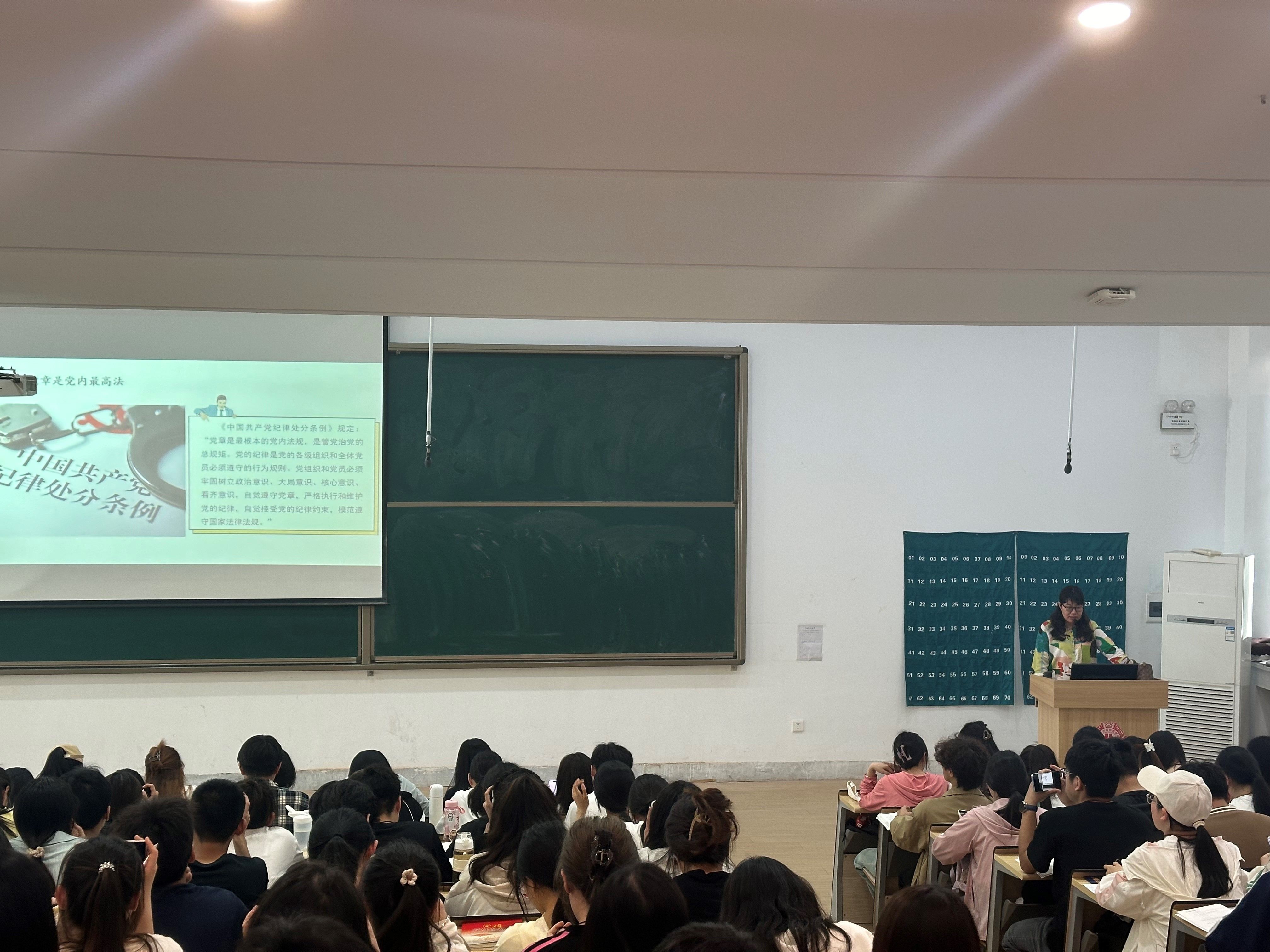 2024年4月22日,会计学院审计教研室党支部书记郭小钰在教学4号楼118教室,为学院第十九期入党积极分子、发展对象讲授主题为“学党章铸党魂,砥初心强党性”的专题党课,全面深化党章学习。