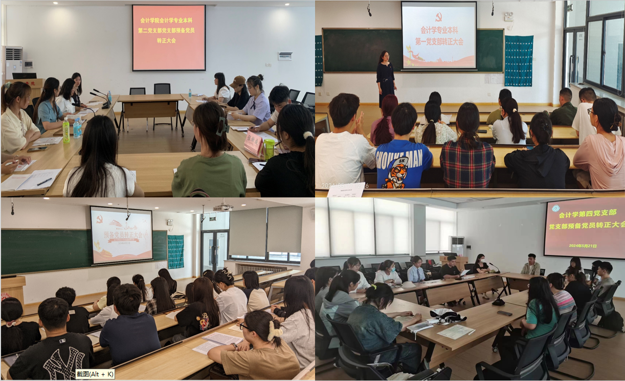 2024年5月17日至5月22日,会计学院各学生党支部和教工党支部共16个党支部分别召开了讨论预备党员转正的支部大会。