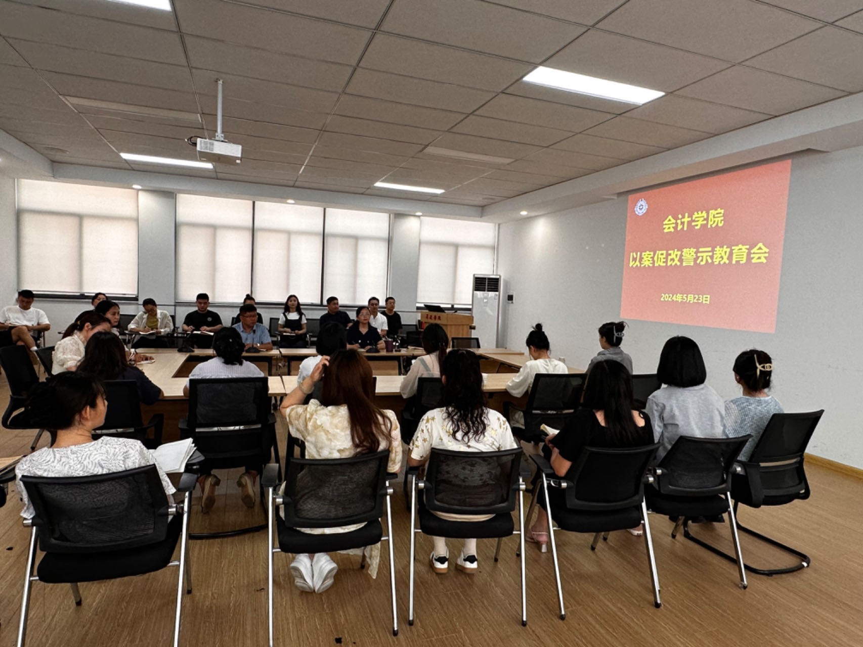 为深入开展党纪学习教育,会计学院于2024年5月23日召开以案促改警示教育会议,学院党委委员和全体辅导员老师参加。