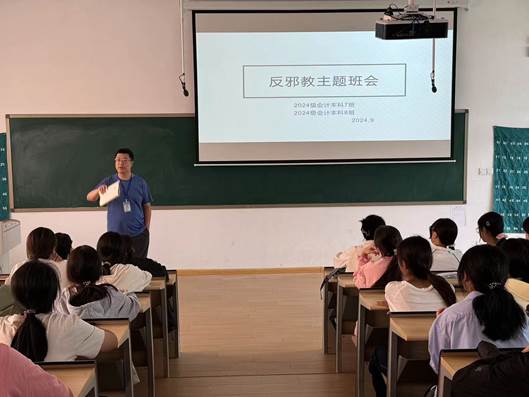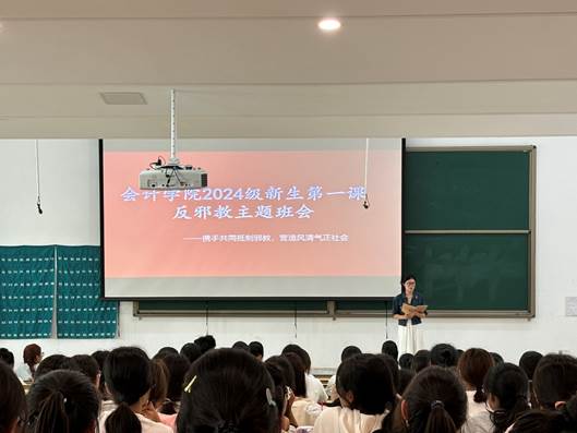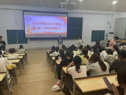 为进一步加强校园精神文明建设,提高会计学院全体新生的防邪反邪拒邪意识,增强自我保护意识和防范能力,营造健康、和谐的校园环境,我院新生班级辅导员陆续开展了2024级新生第一课反邪教教育主题班会,此次班会全体师生积极响应,取得了显著成效。