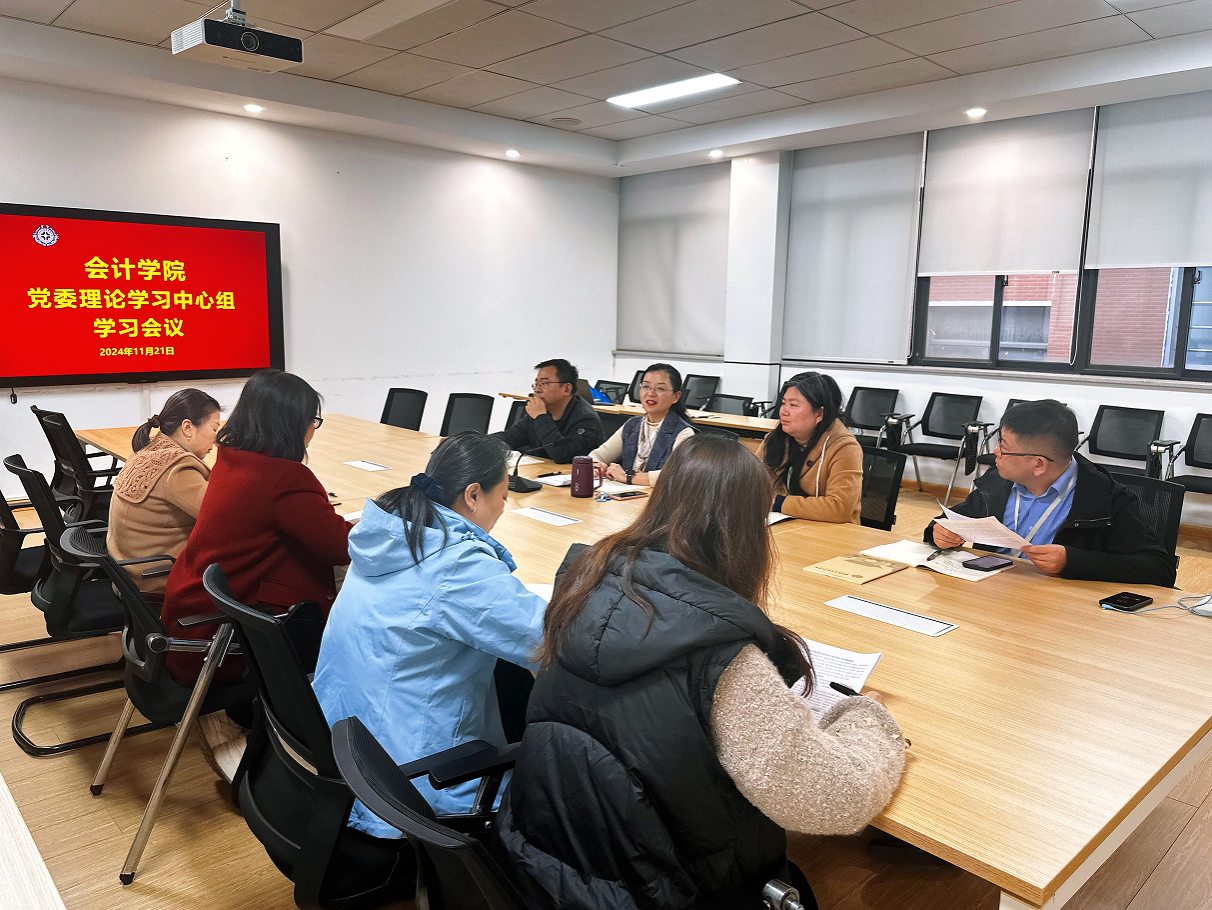 2024年11月21日,会计学院在4号楼209会议室组织召开会计学院党委理论学习中心组学习会议,学院党委理论学习中心组成员参加会议。会议由学院党委书记张蕾主持。