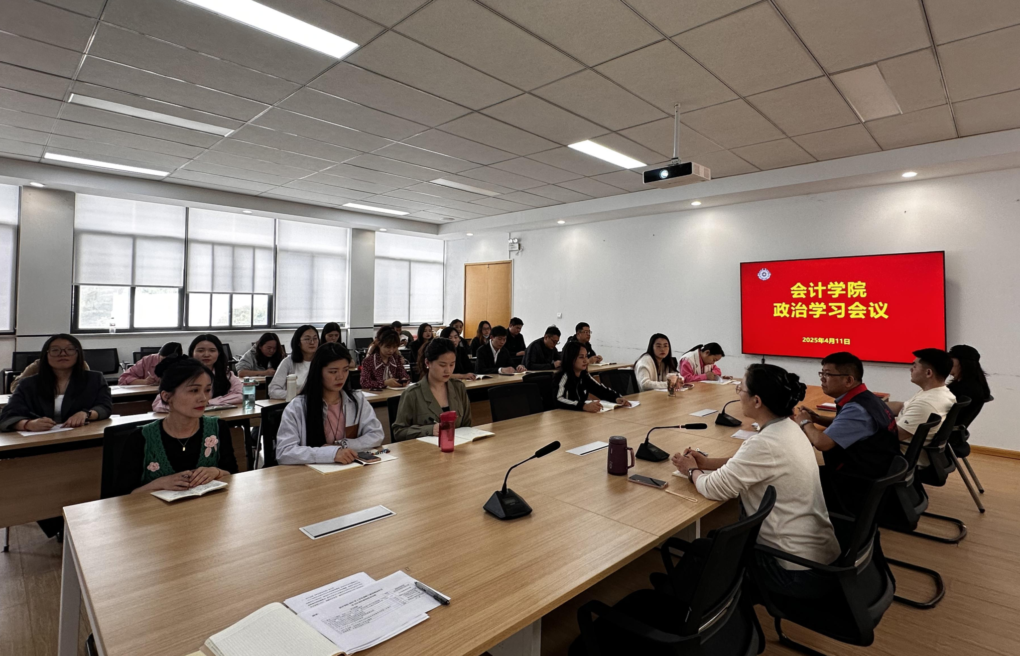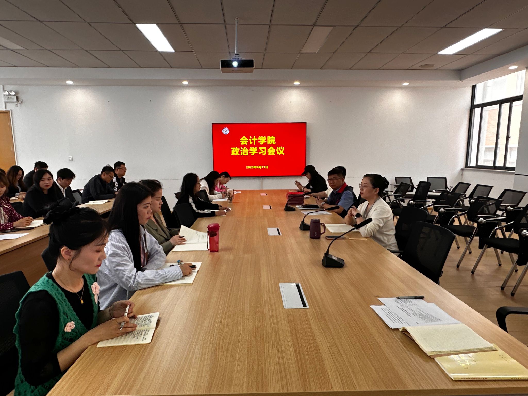 2025年4月11日,会计学院于4号楼209会议室组织集中政治学习。本次会议由学院党委书记张蕾主持,行政秘书、全体辅导员和组织员参加。