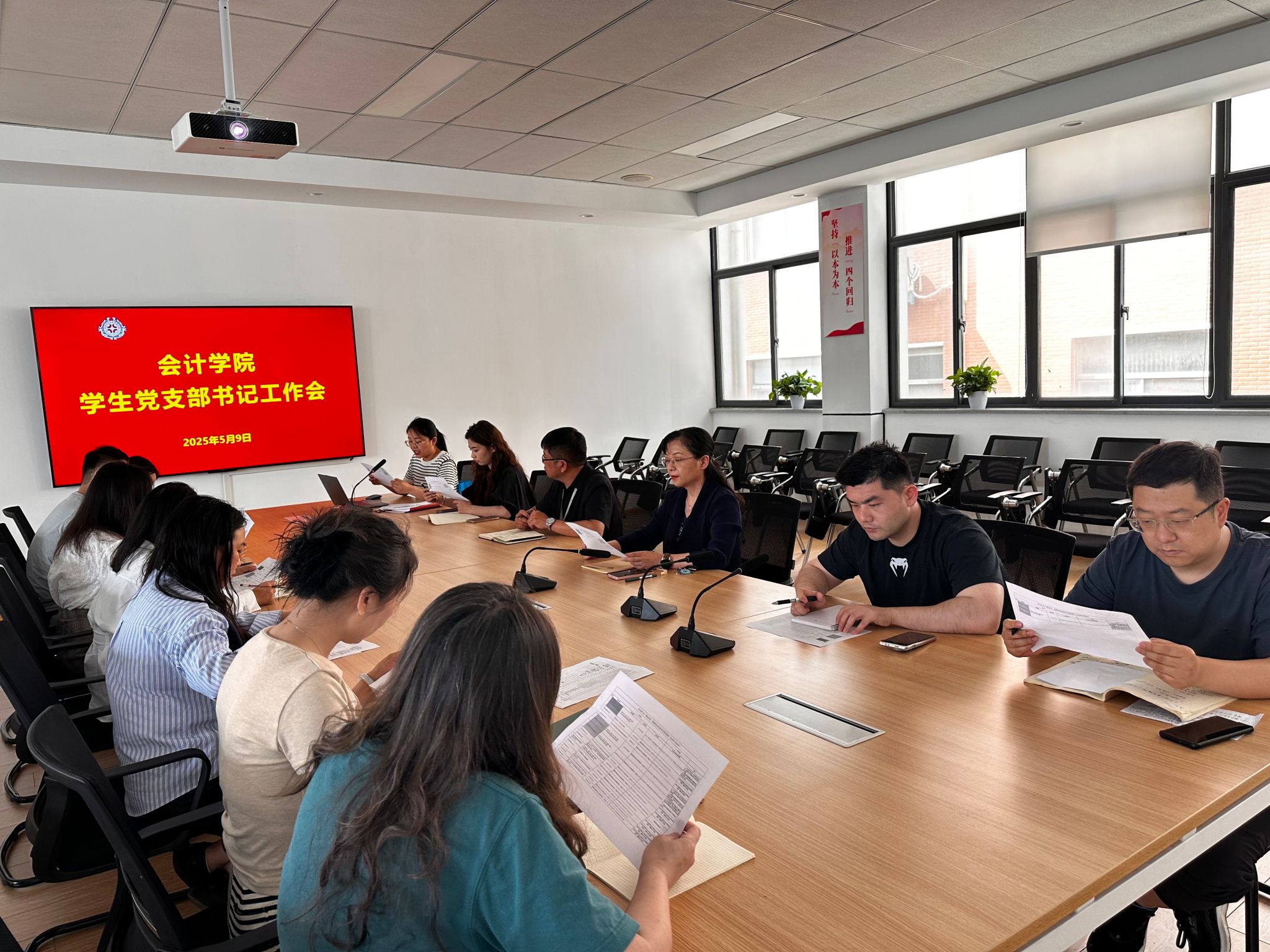 2025年5月9日,会计学院于教学4号楼209会议室召开学生党支部书记工作会。会议由学院党委书记张蕾主持,学院党委委员和全体学生党支部书记参加会议。
