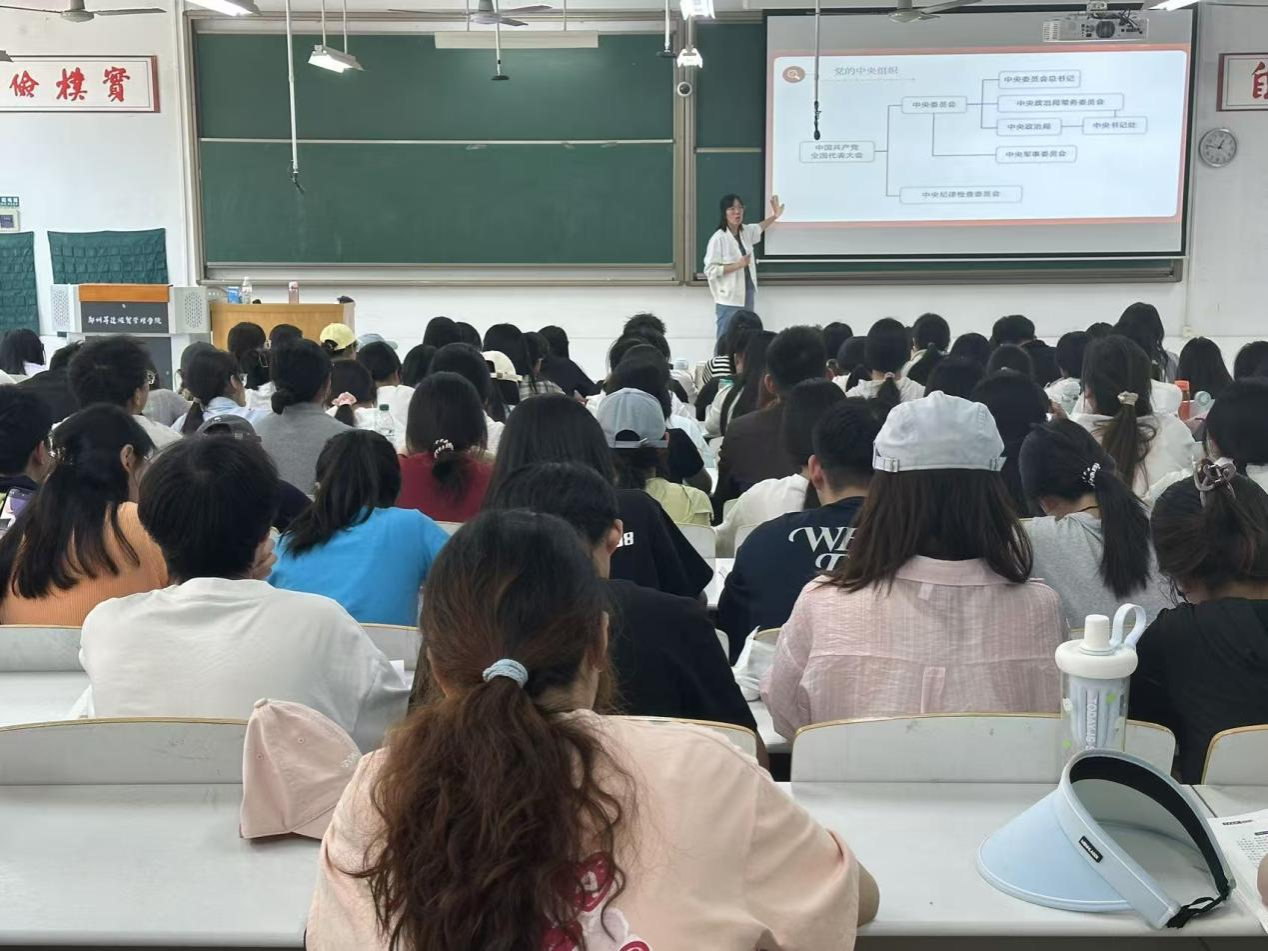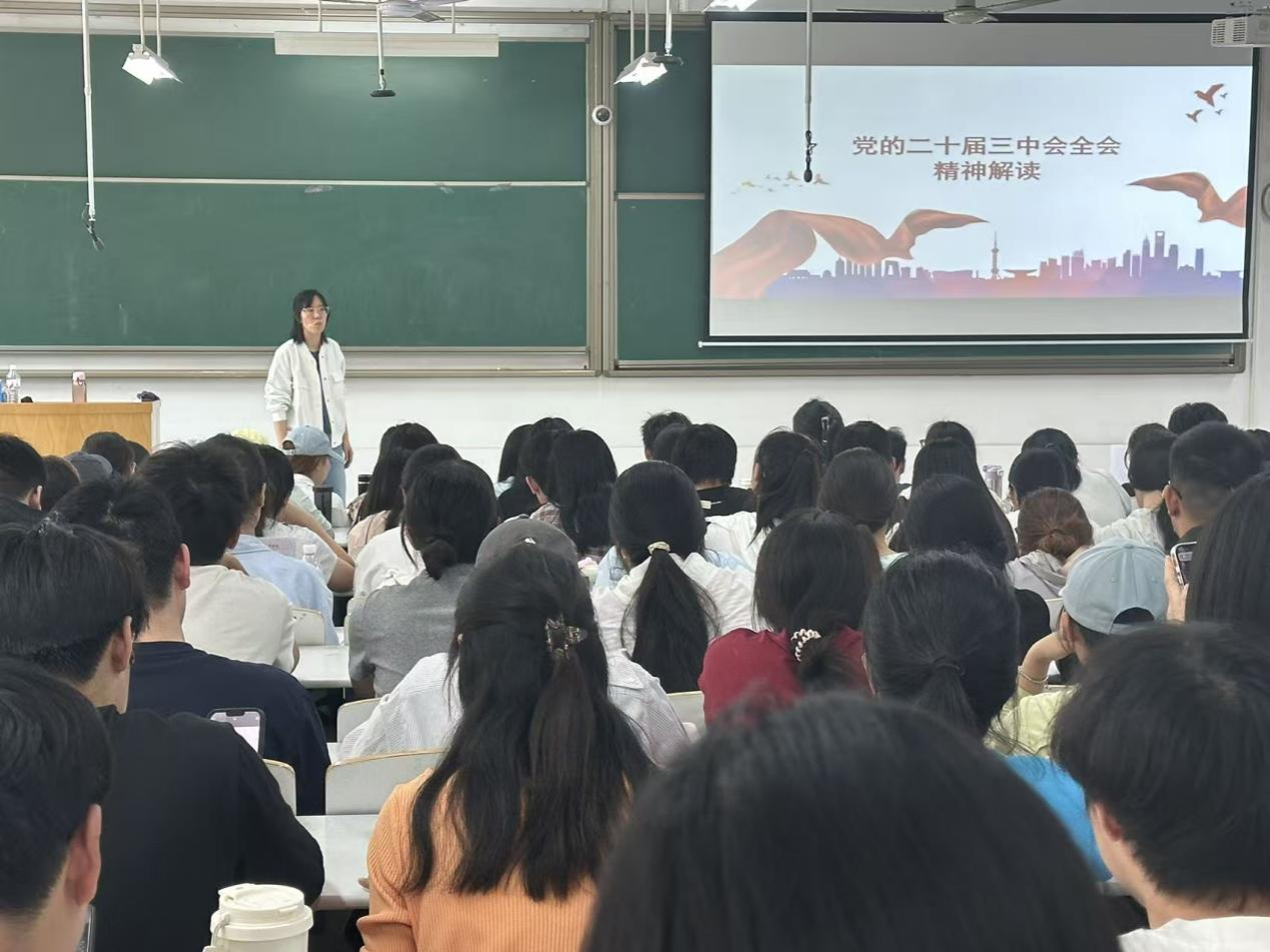 2025年5月26日在时金楼107教室,会计学院税收教研室党支部书记王燕为第二十一期发展对象、入党积极分子讲授主题为《党的二十届三中全会精神解读》的专题党课。