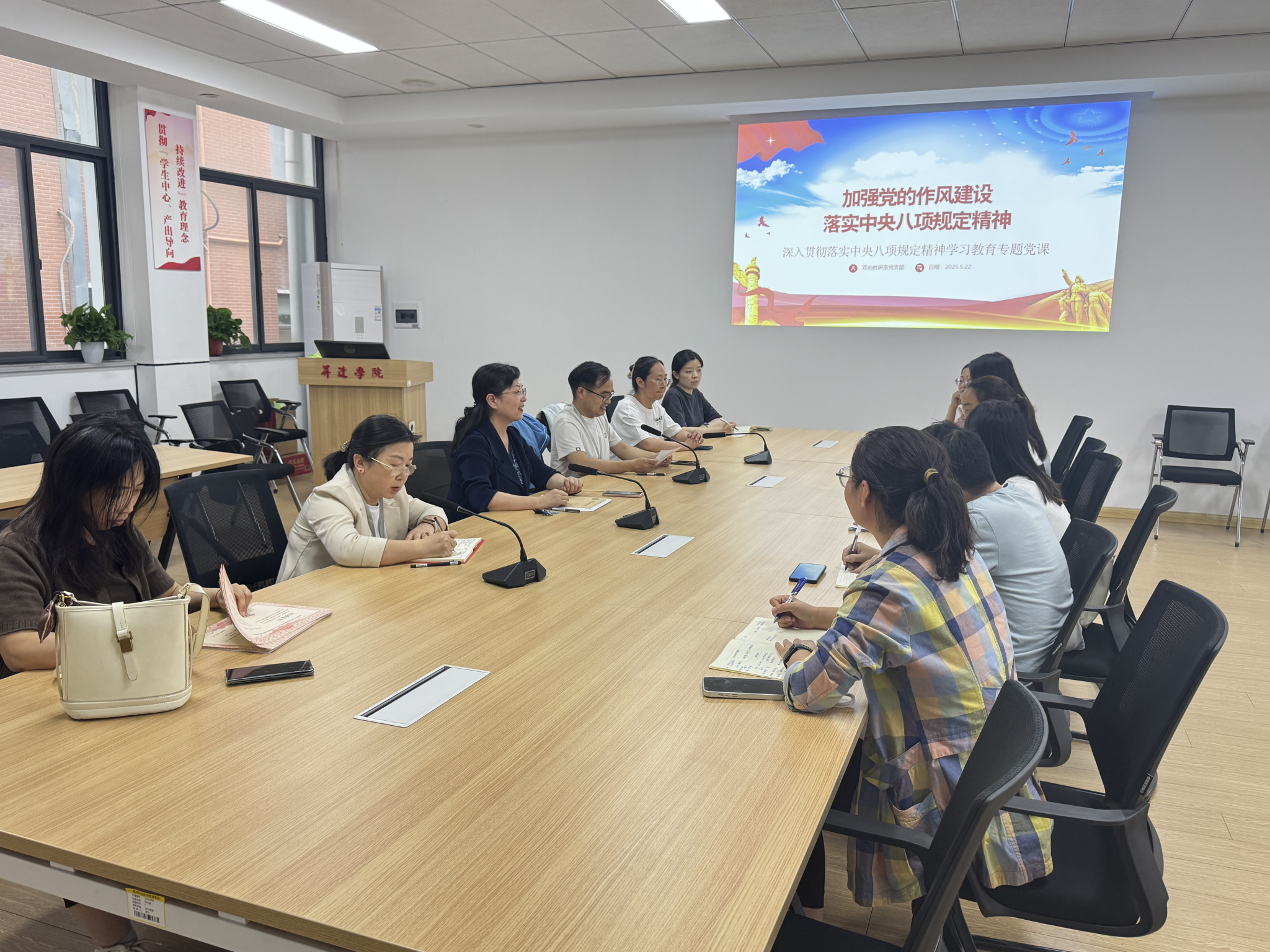 为深入贯彻中央八项规定精神学习教育,提升教研室全体教师的政治理论素养,2025年5月22日下午,双创教研室党支部在4号楼209组织开展专题政治学习,会议由双创教研室党支部书记闫本宗主持,教研室全体教师参加会议。学院党委书记张蕾参加此次政治学习。