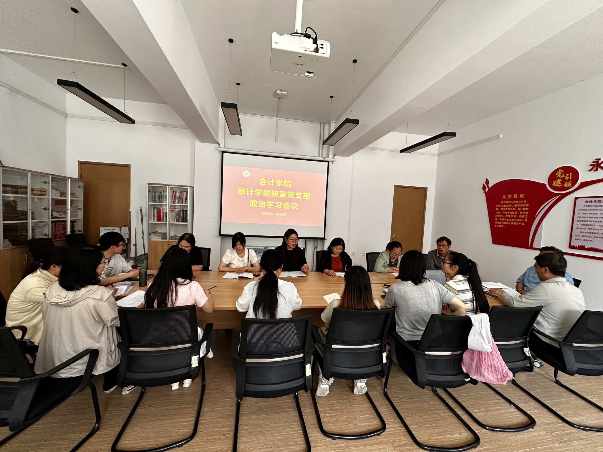为深入贯彻中央八项规定精神学习教育,提升教研室全体教师的政治理论素养,2025年5月22日,会计学院审计教研室党支部组织召开政治学习会议。此次会议围绕“中央八项规定及其实施细则精神”开展集体学习。会议由党支部书记郭小钰同志主持,教研室全体教师参加。